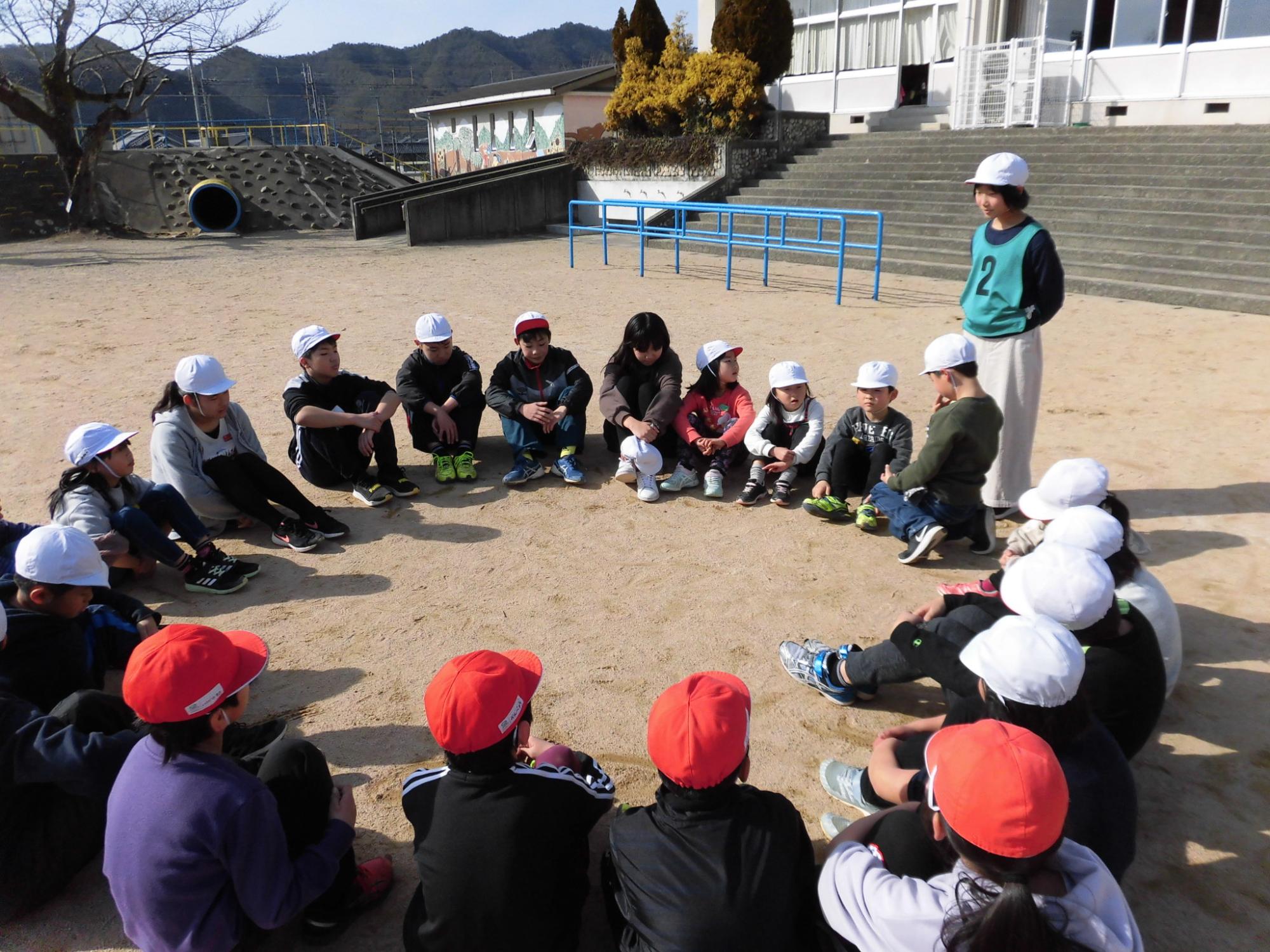6年生を中心に全学年が楽しめるように考え、取り組んできた楠っ子班遊びもいよいよ今日で終わりです。各色、各班に分かれて、鬼ごっこやドッジボール、しっぽとりを楽しみました。