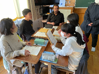 英会話が始まる直前まで、緊張で表情がこわばっている様子も見られました。しかし、いざ英会話が始まると、準備していた表現方法やジェスチャーを使って豊かに表現したり、予想だにしていなかったALTからの質問にもきちんと答えたりしていました。これまでの学習を生かすとともに、英会話体験を心から楽しむことができていました。