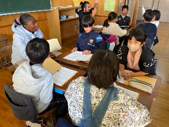ふり返りには、「うまく言えないところもあったけど、ALTの先生と一緒に話せて楽しかった。」「自分の思いを英語で伝えることは難しいけど、これからはもっとたくさんの表現を学んで、上手に伝えられるようになりたい。」など、次の学習への意欲を高める姿が見られました。