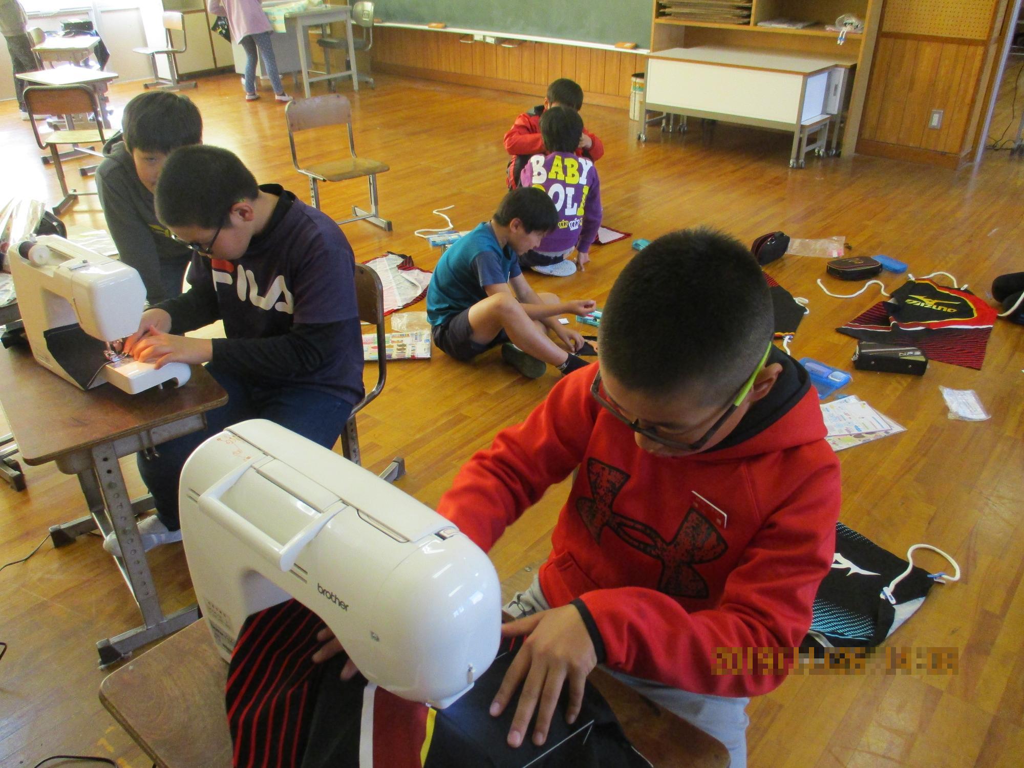 はじめはミシンの操作に困惑する子どもたちでしたが、「これはこうするんやで~」「手伝ったるわ!」と、お互いに声をかけ合って頑張っています。完成まで、あとひと息です!