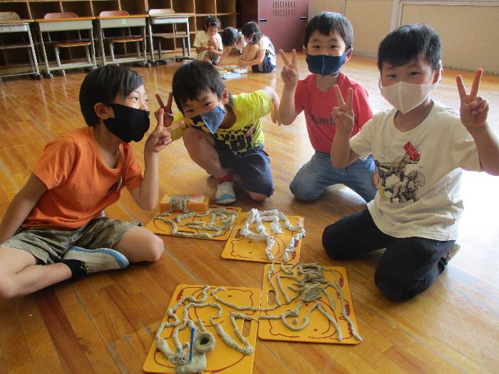 ほそ~く伸ばした粘土を使って、迷路を作りました。