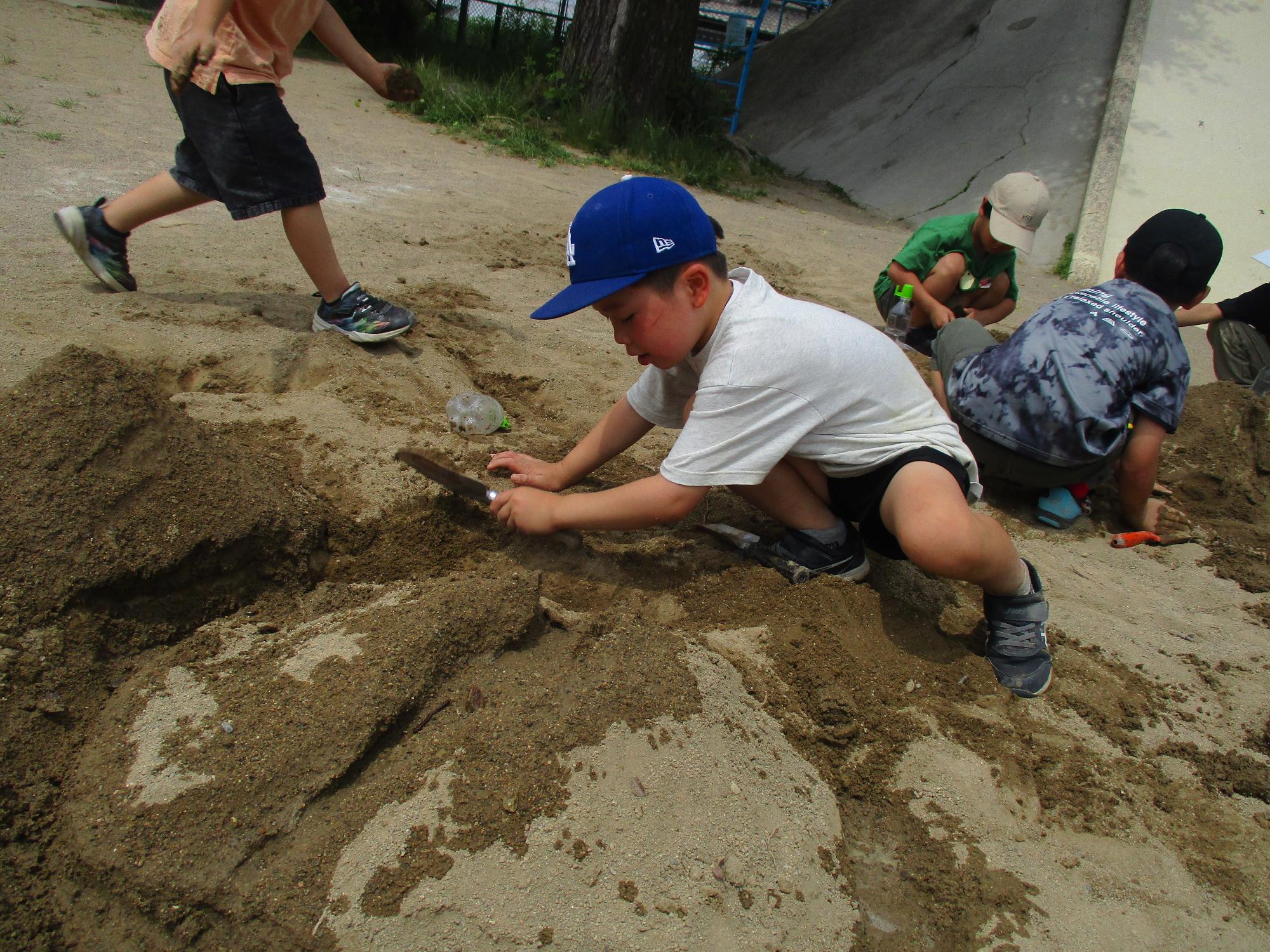 「もっと深く掘りたいからシャベルがいるなあ。」