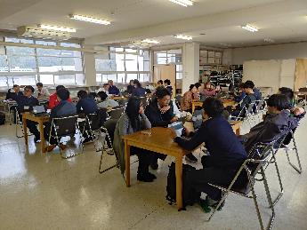 1月の研究会に向けて教科ごとに振り返り。大橋主事から助言もいただきました。