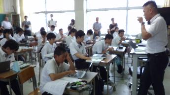 市内外から約50名の参加。3クラスの公開授業をし、大城先生から指導助言をいただきました。