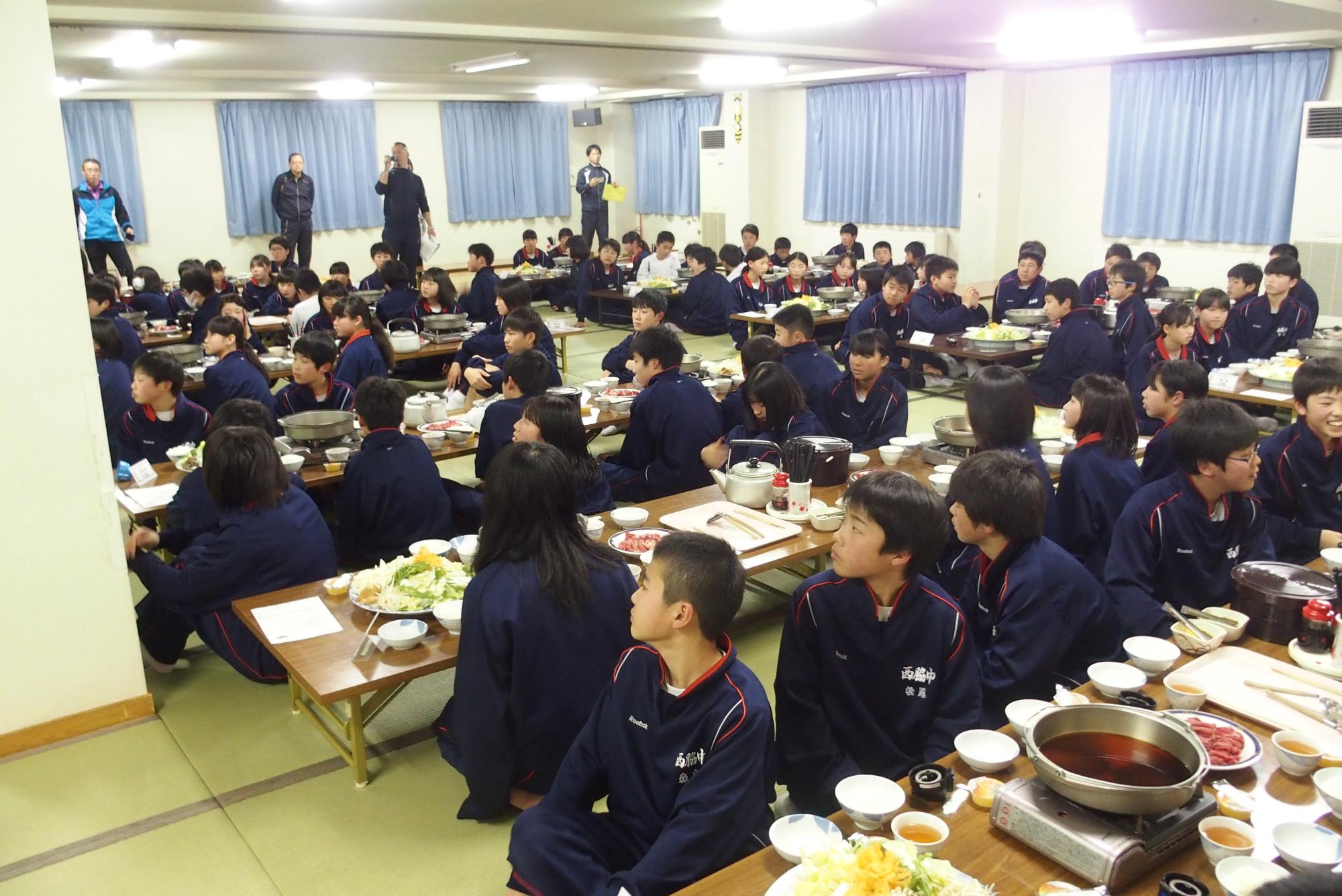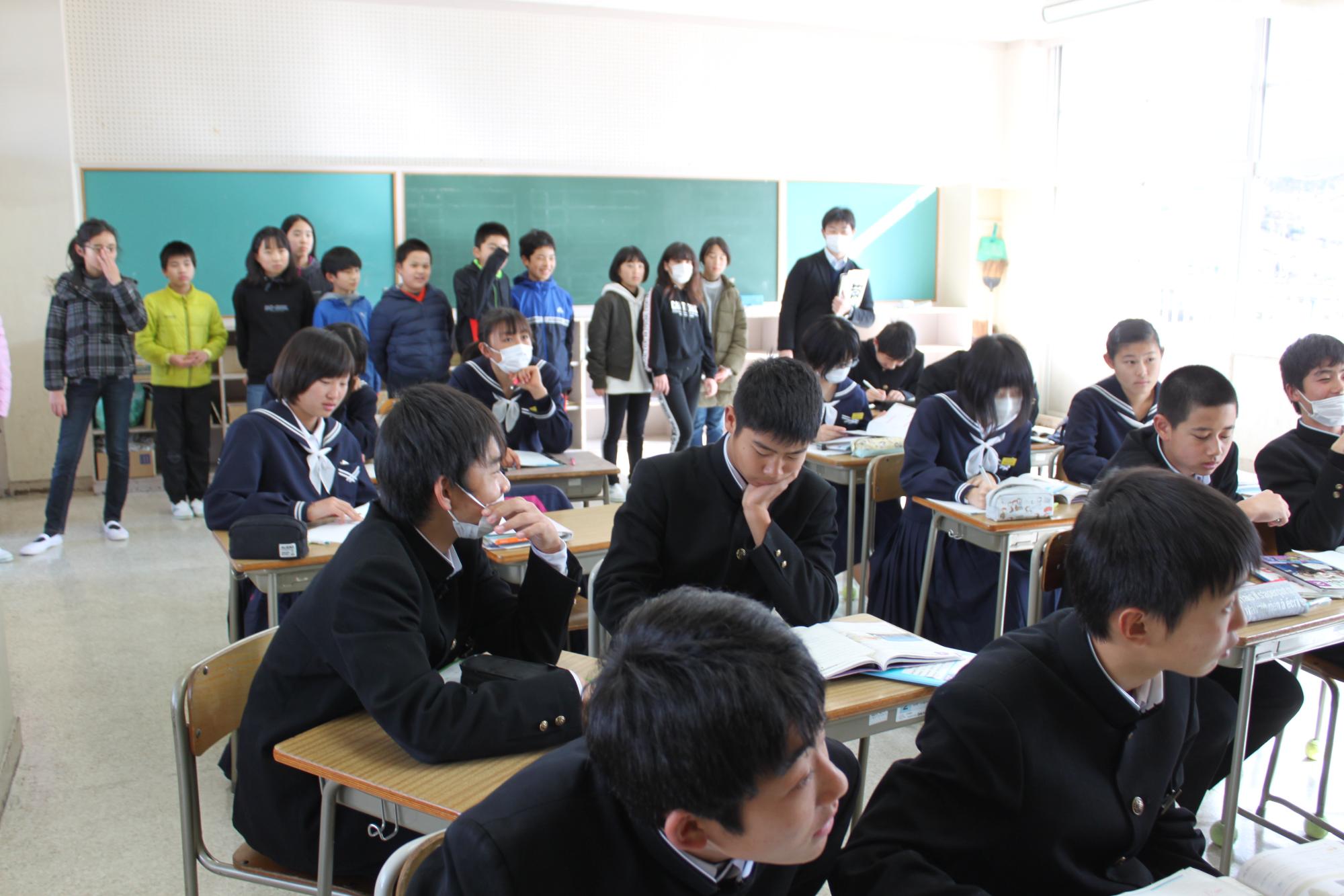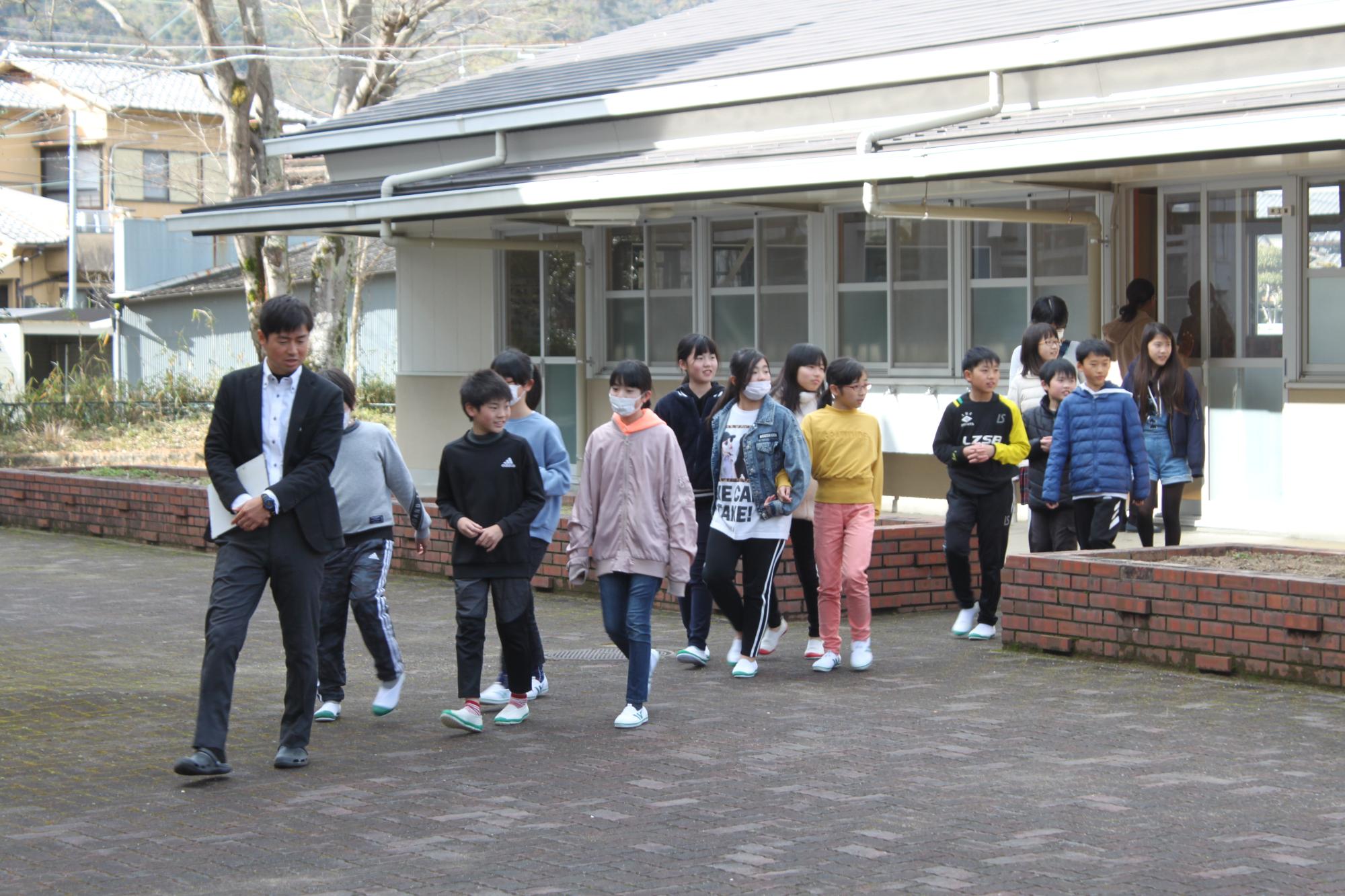 西脇小・日野小の6年生が、班ごとに授業や部活動を見学しました。中学校はどうでしたか?