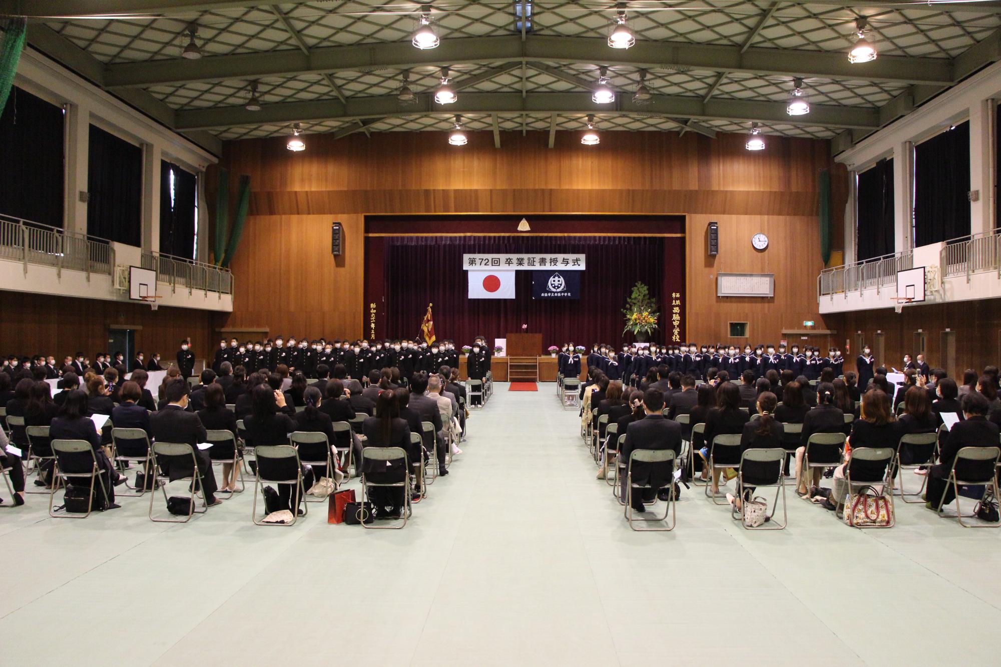 久しぶりの登校で、友達と嬉しい再会! 卒業生と保護者による式が厳粛に挙行されました。祝 卒業!