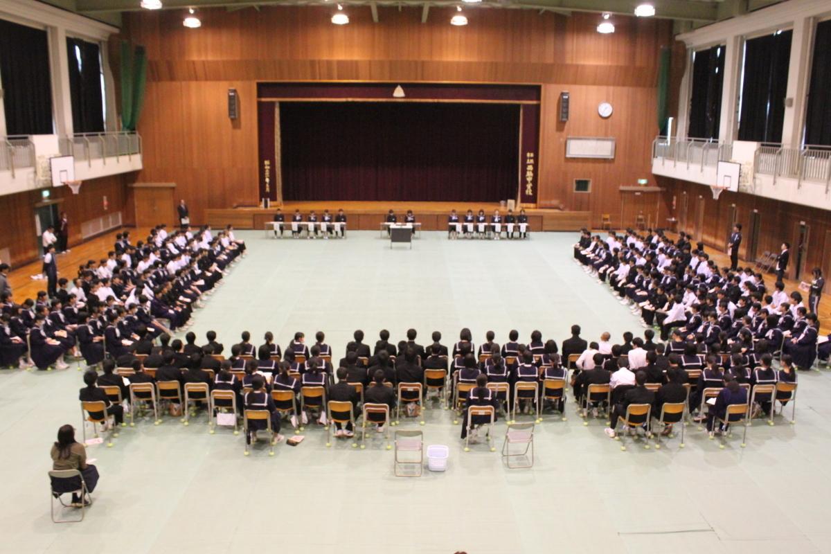終業式後、レントン使節団・運動部県大会・東播吹奏楽コンクールの壮行会