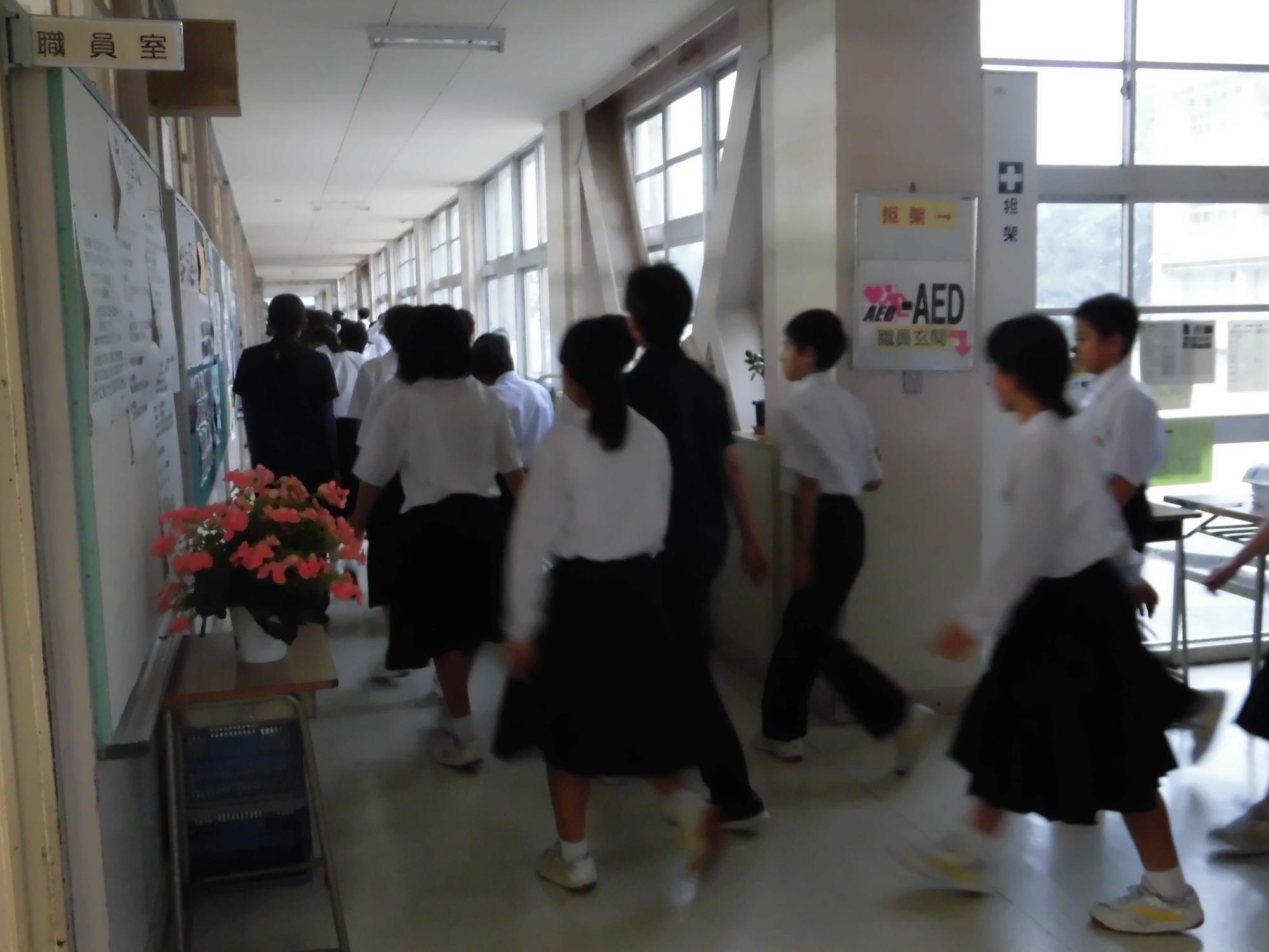 不審者を想定し、体育館へ避難訓練をしました。