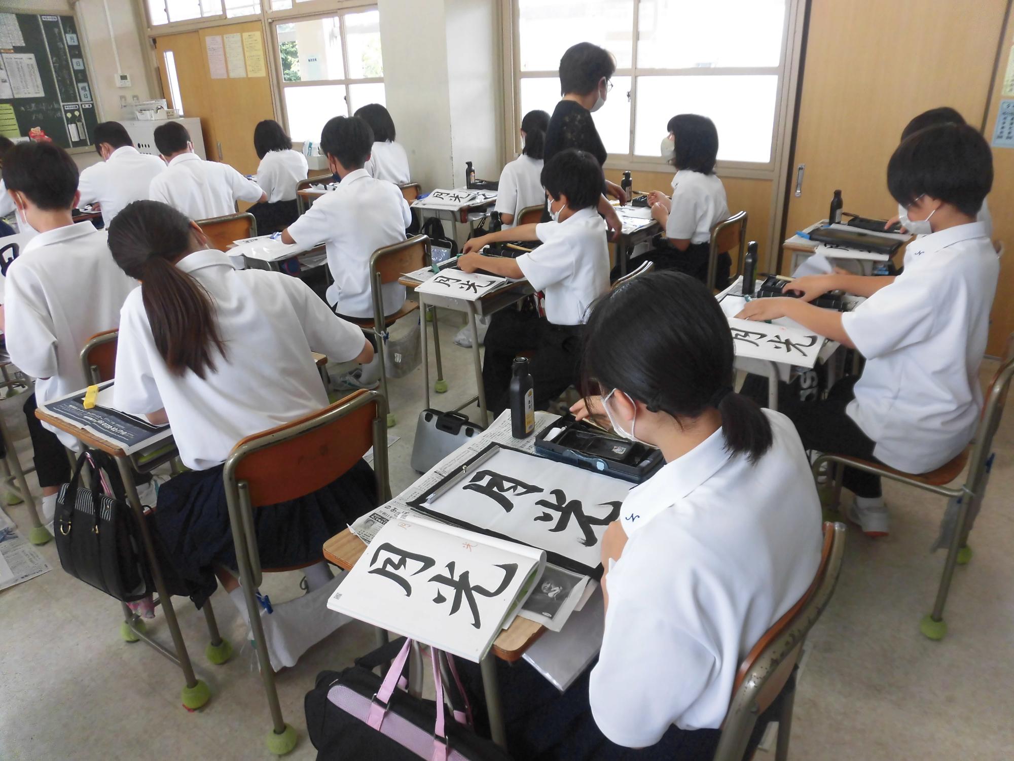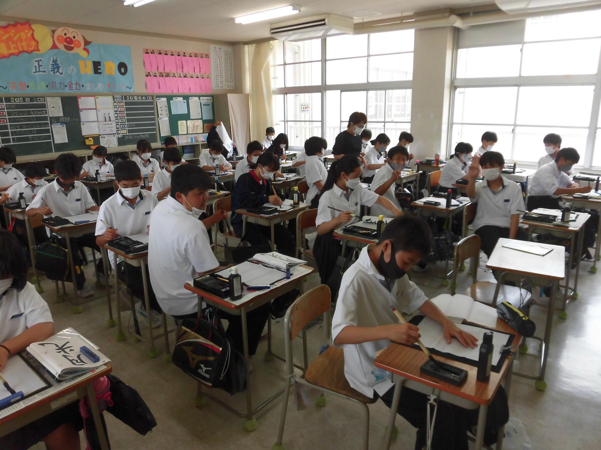 1年生の国語科で書道に取り組みました。