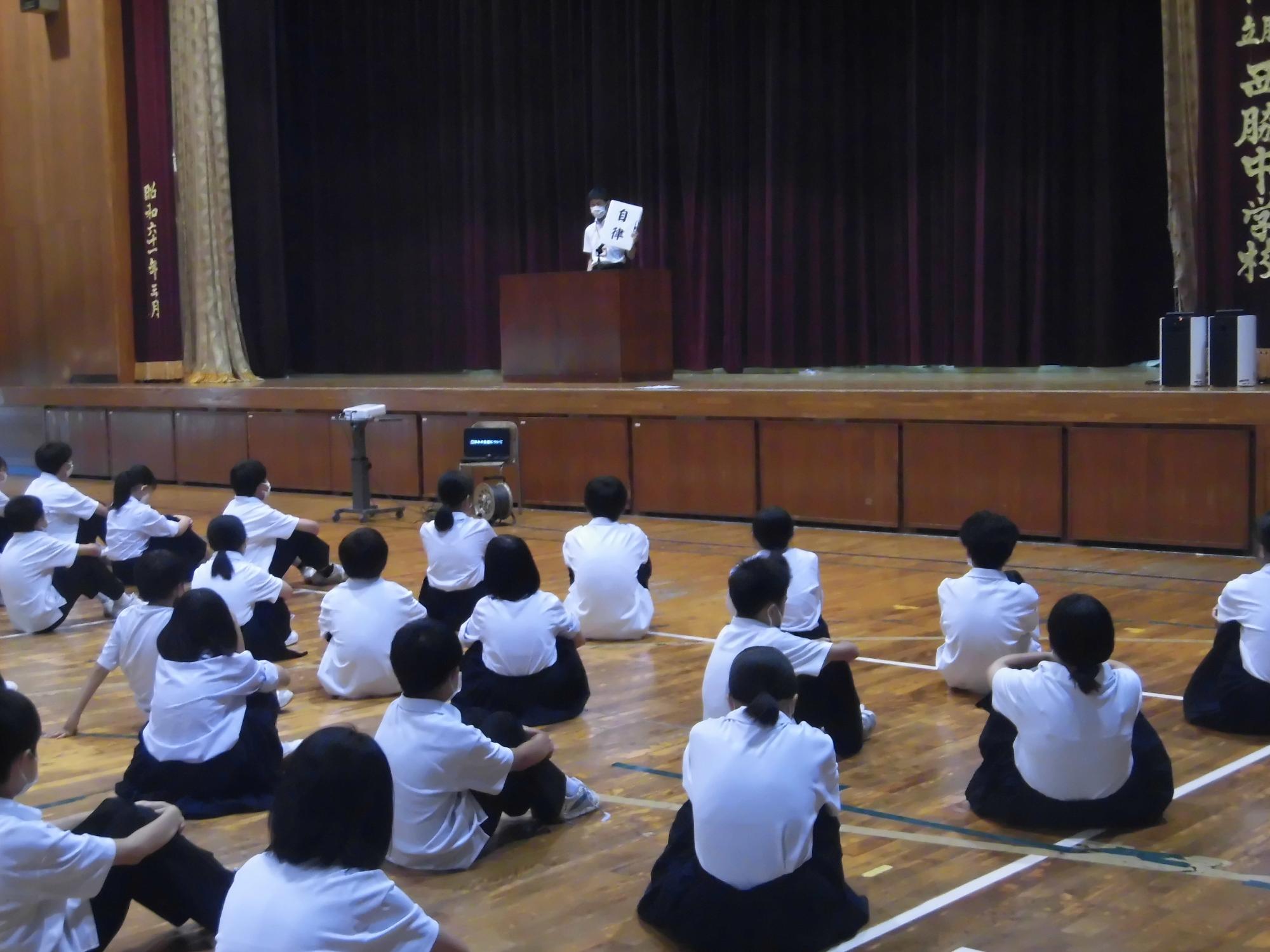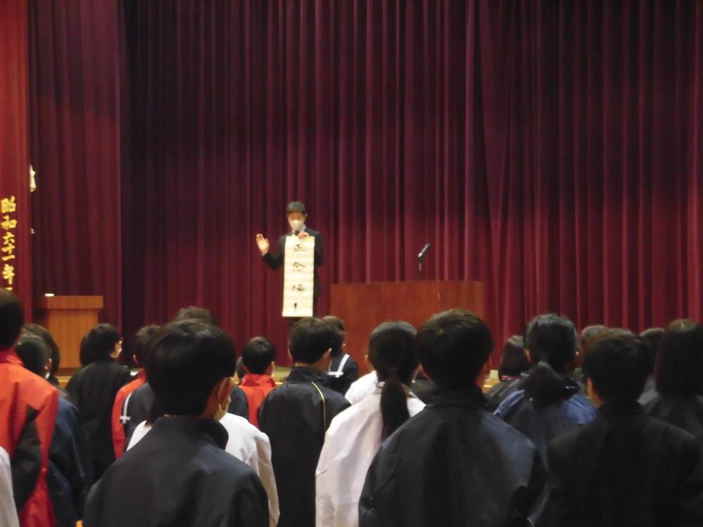 校長先生より「自律」の話。その後、県大会と
