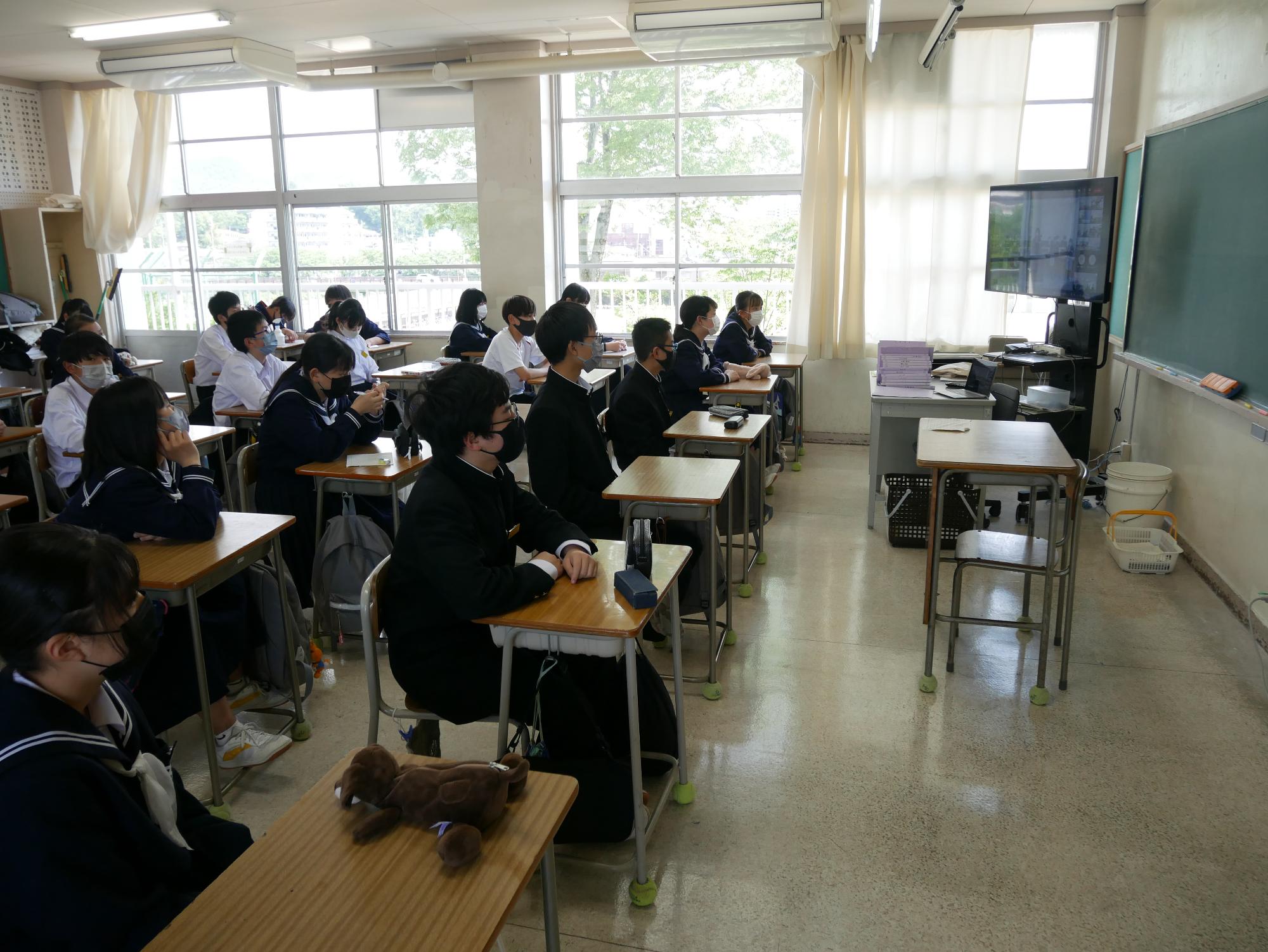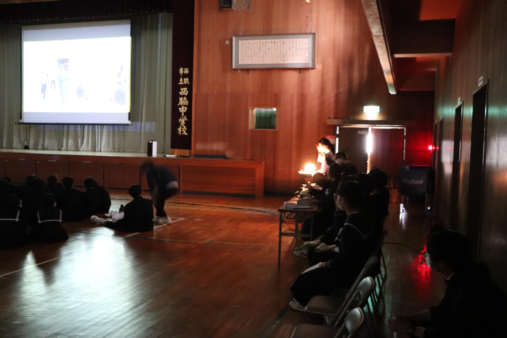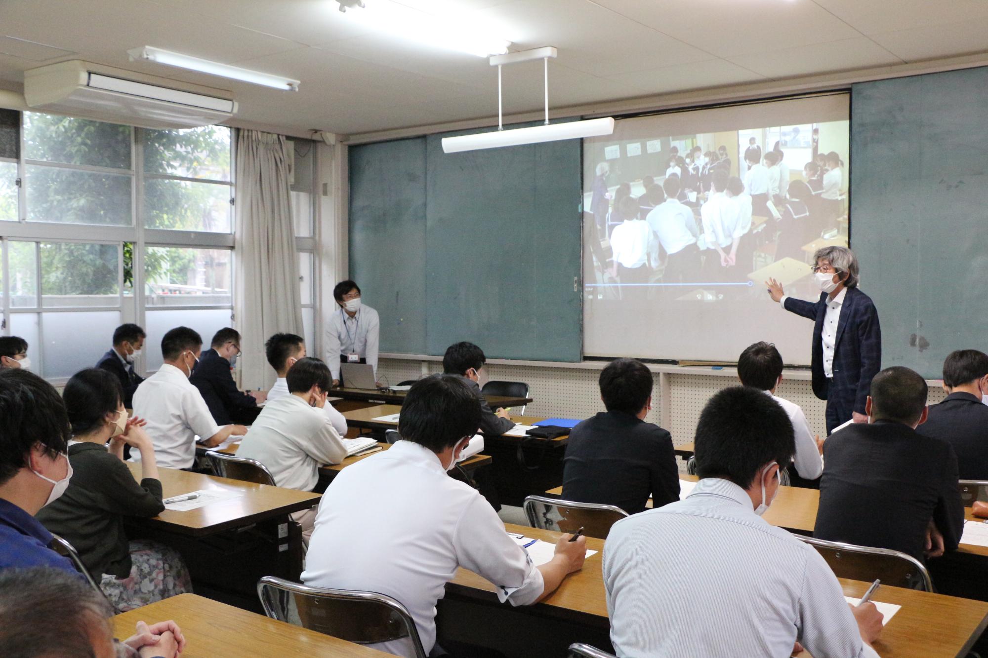 教室で「池田小の避難訓練」の動画を見た後、