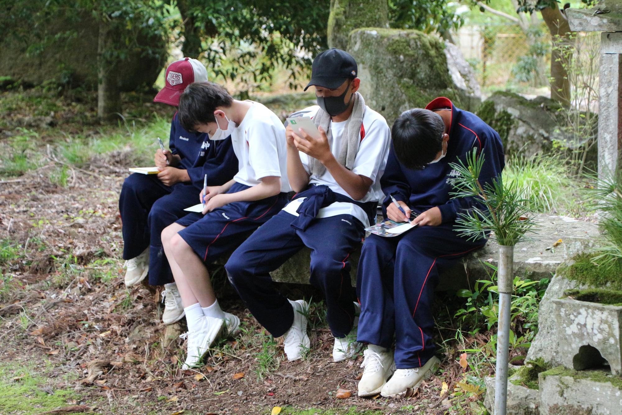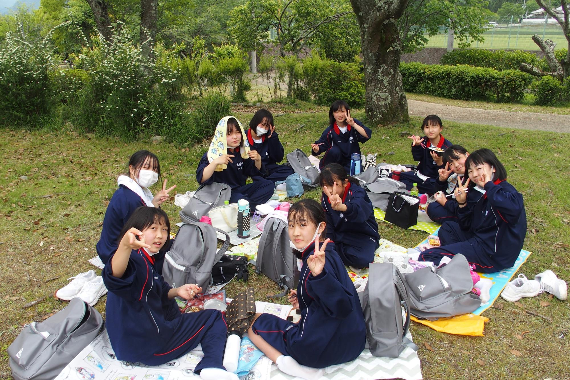 西林寺山を登山後、境内でお弁当タイム!