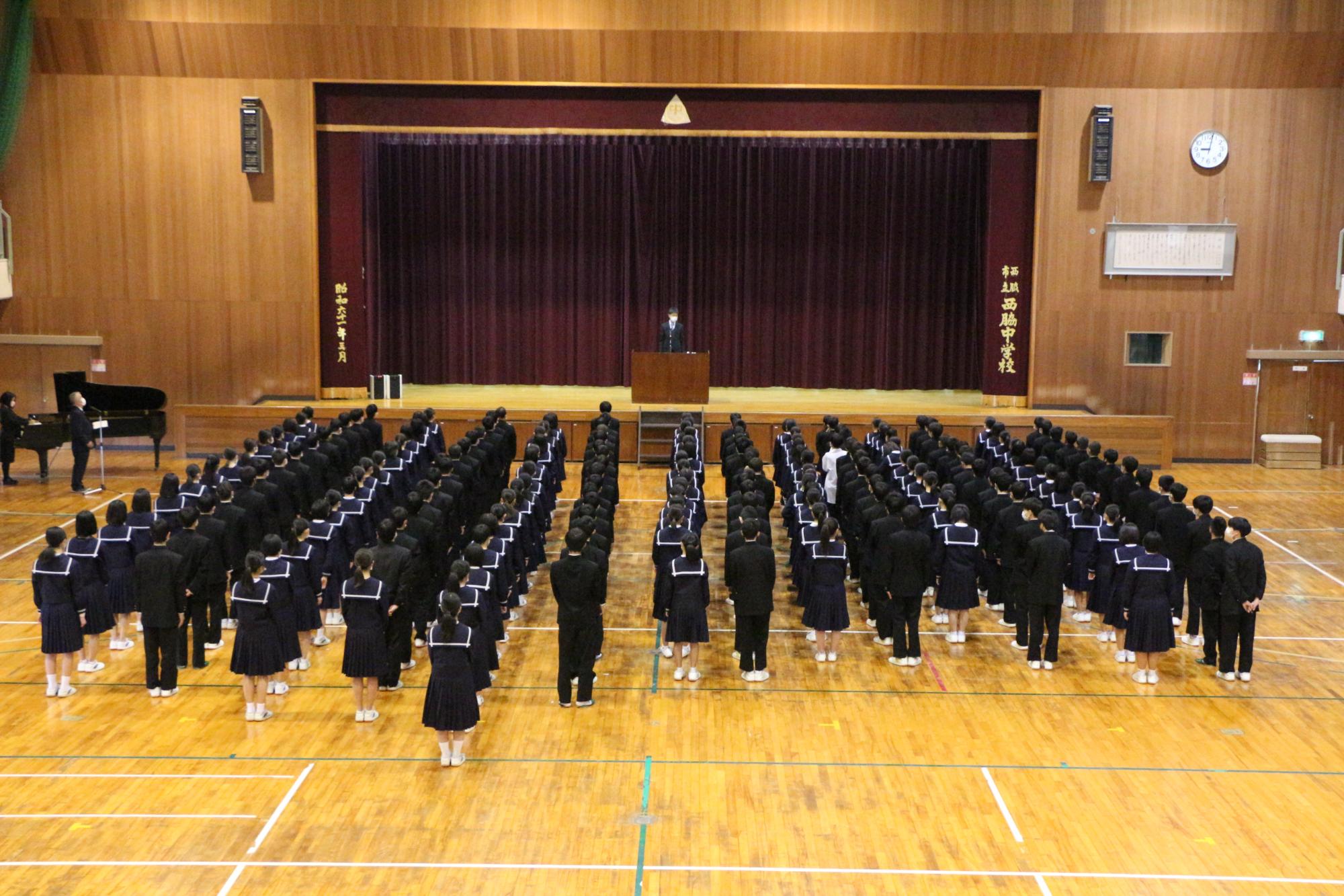 卒業式に向けて在校生も練習が開始されました。