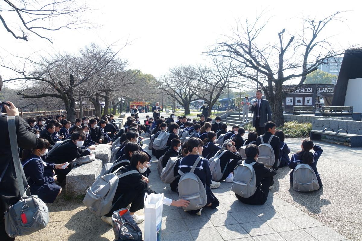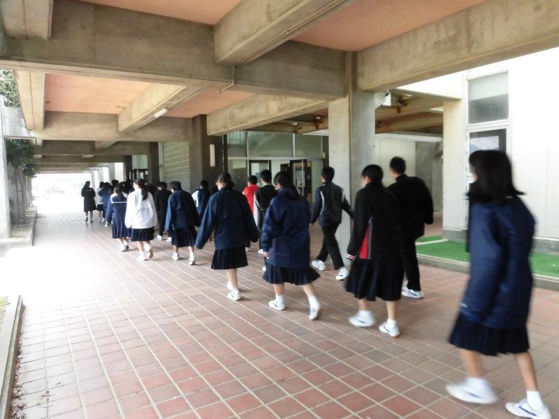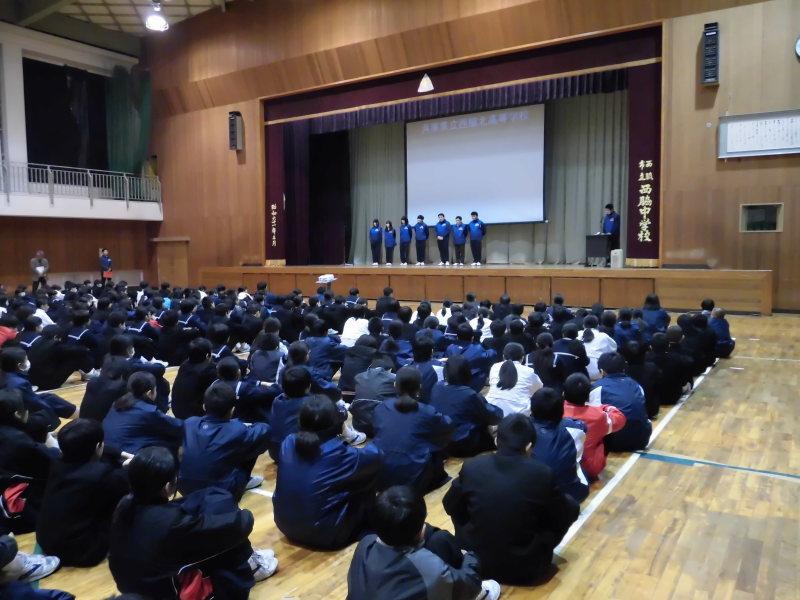 避難訓練後、西脇北高校の生徒からボランティアについての取組の話を聞きました。