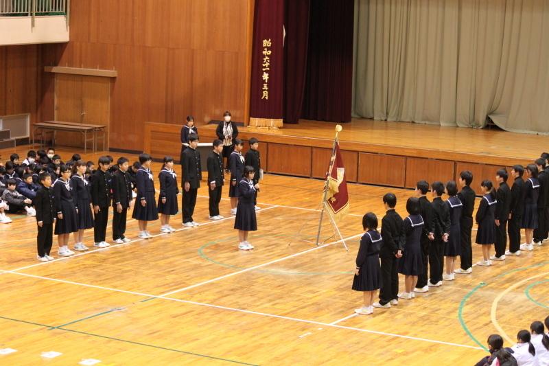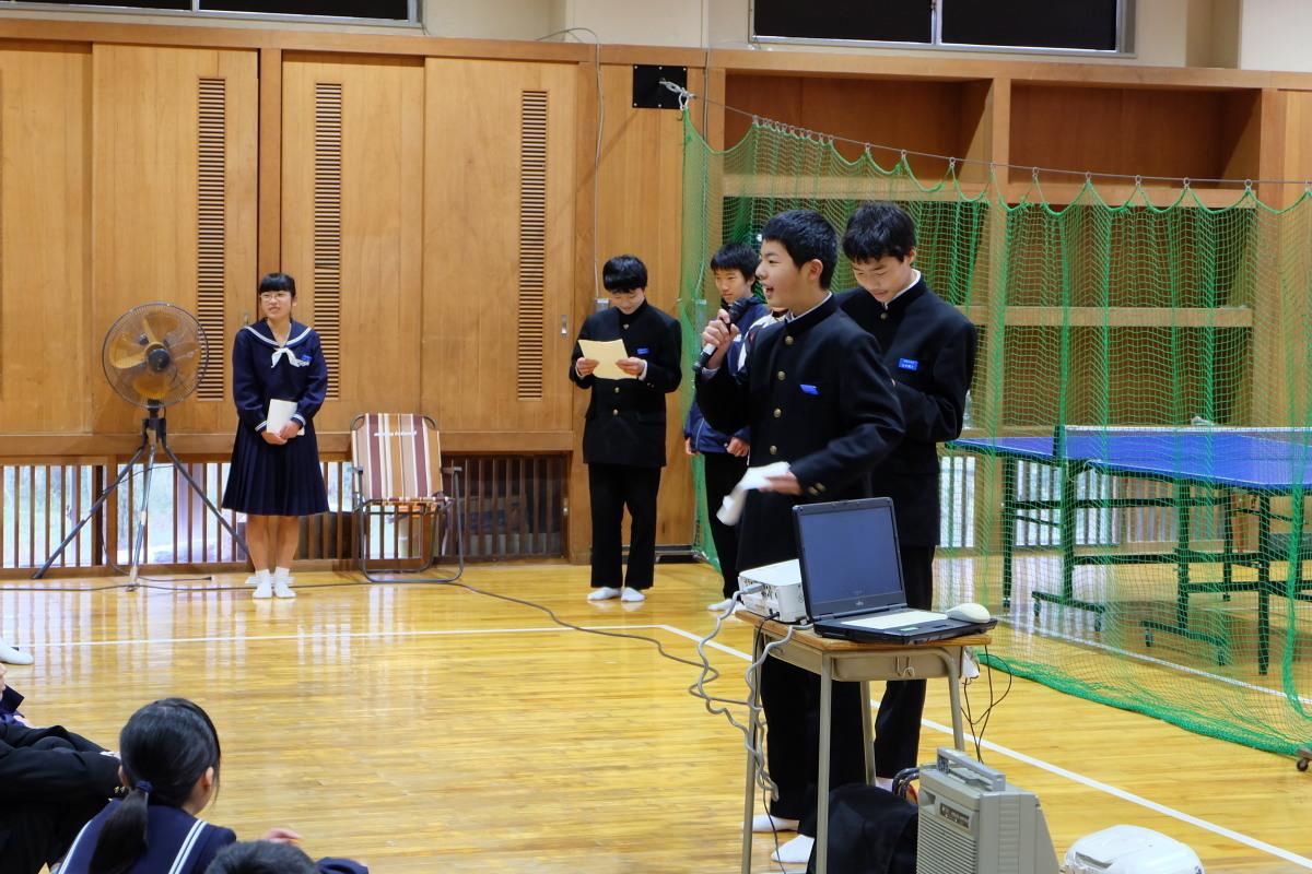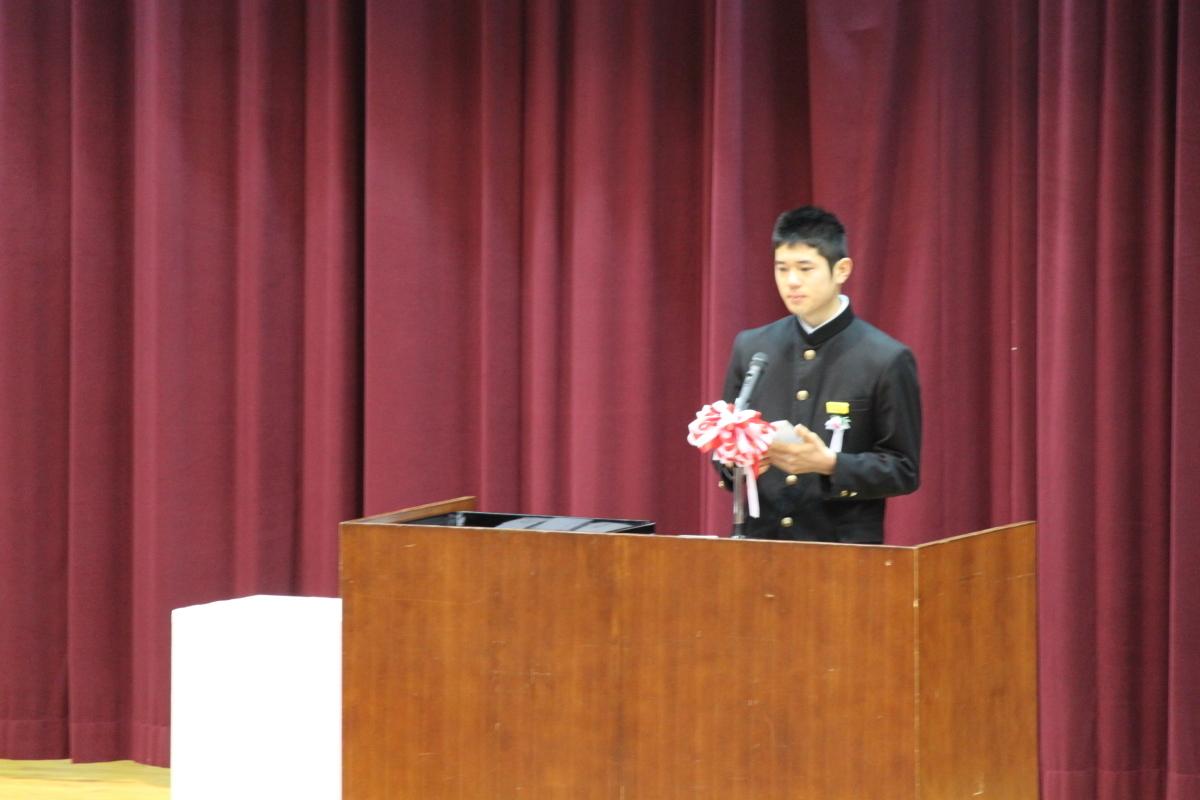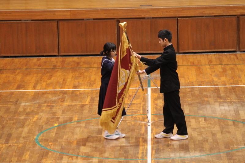 旧生徒会役員を労い、新生徒会役員へバトンタッチしました。 頑張りましょう!