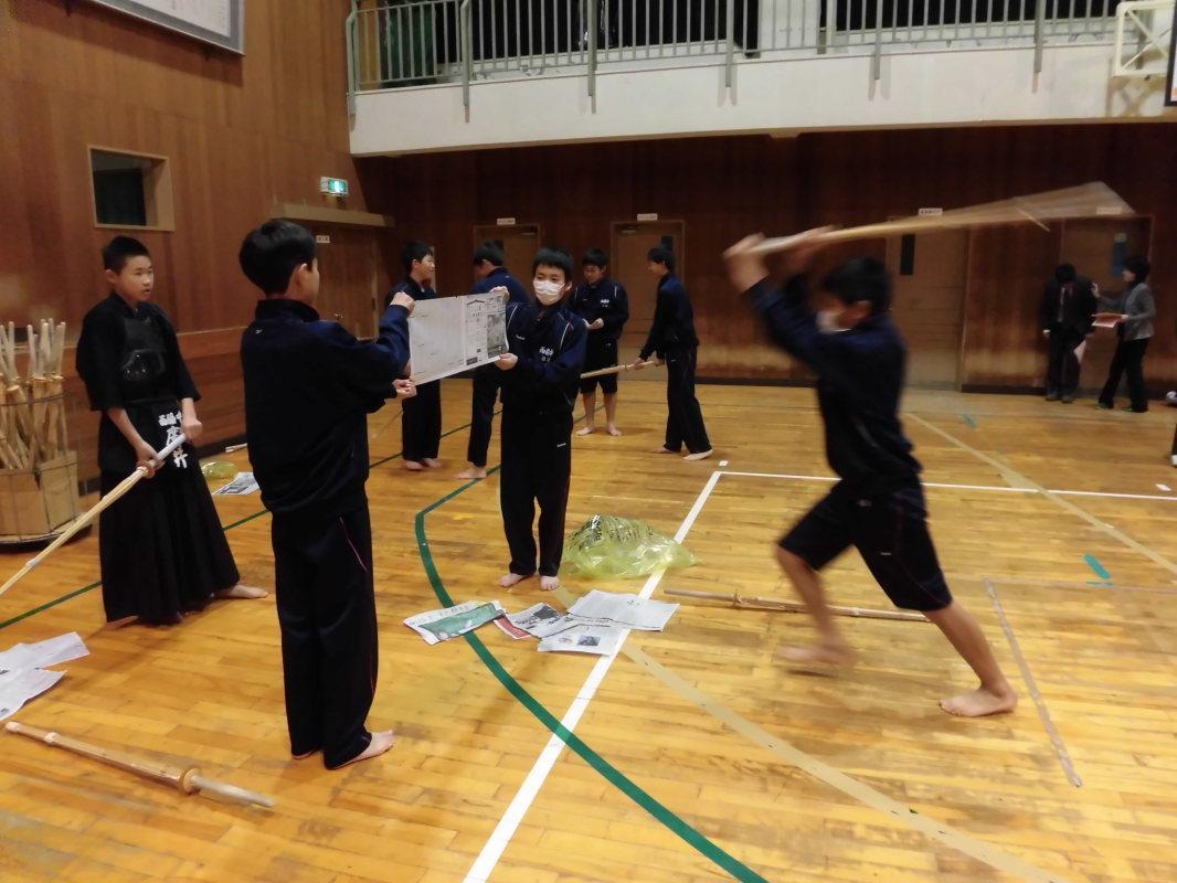 一年生の剣道を見てもらいました。目標は「まっすぐ竹刀を振り下ろす!」