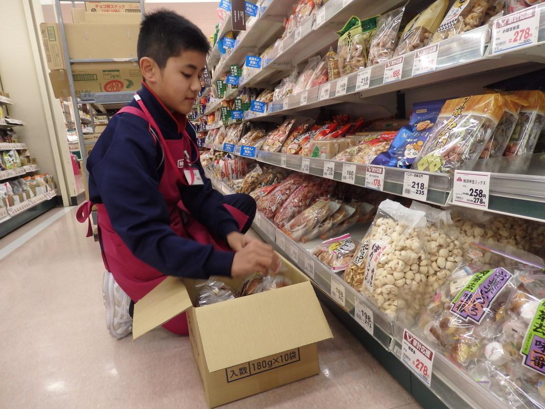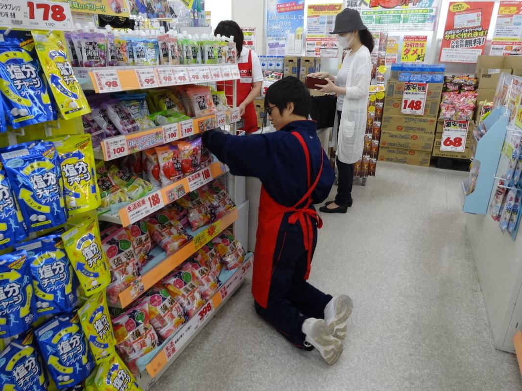 キリン堂 膝をついて陳列中