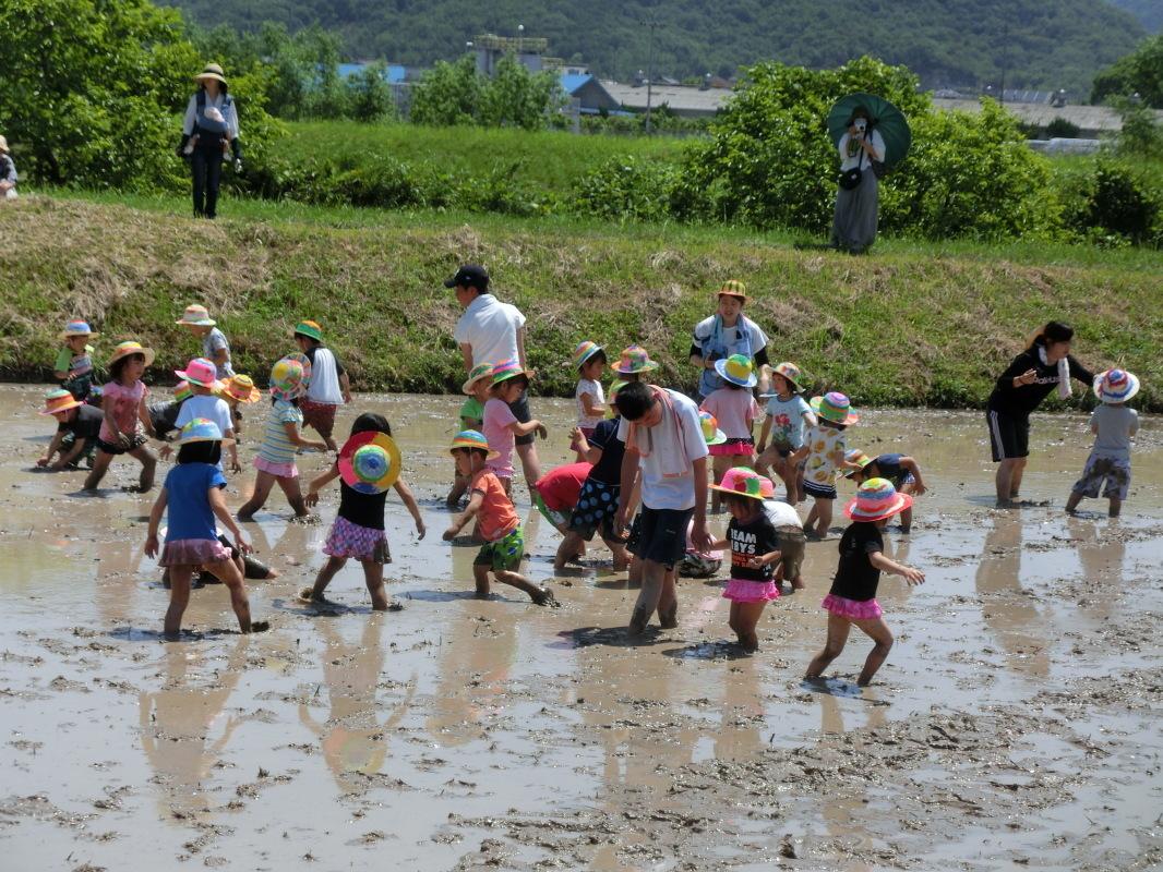 西脇こども園 田植えでドロドロ